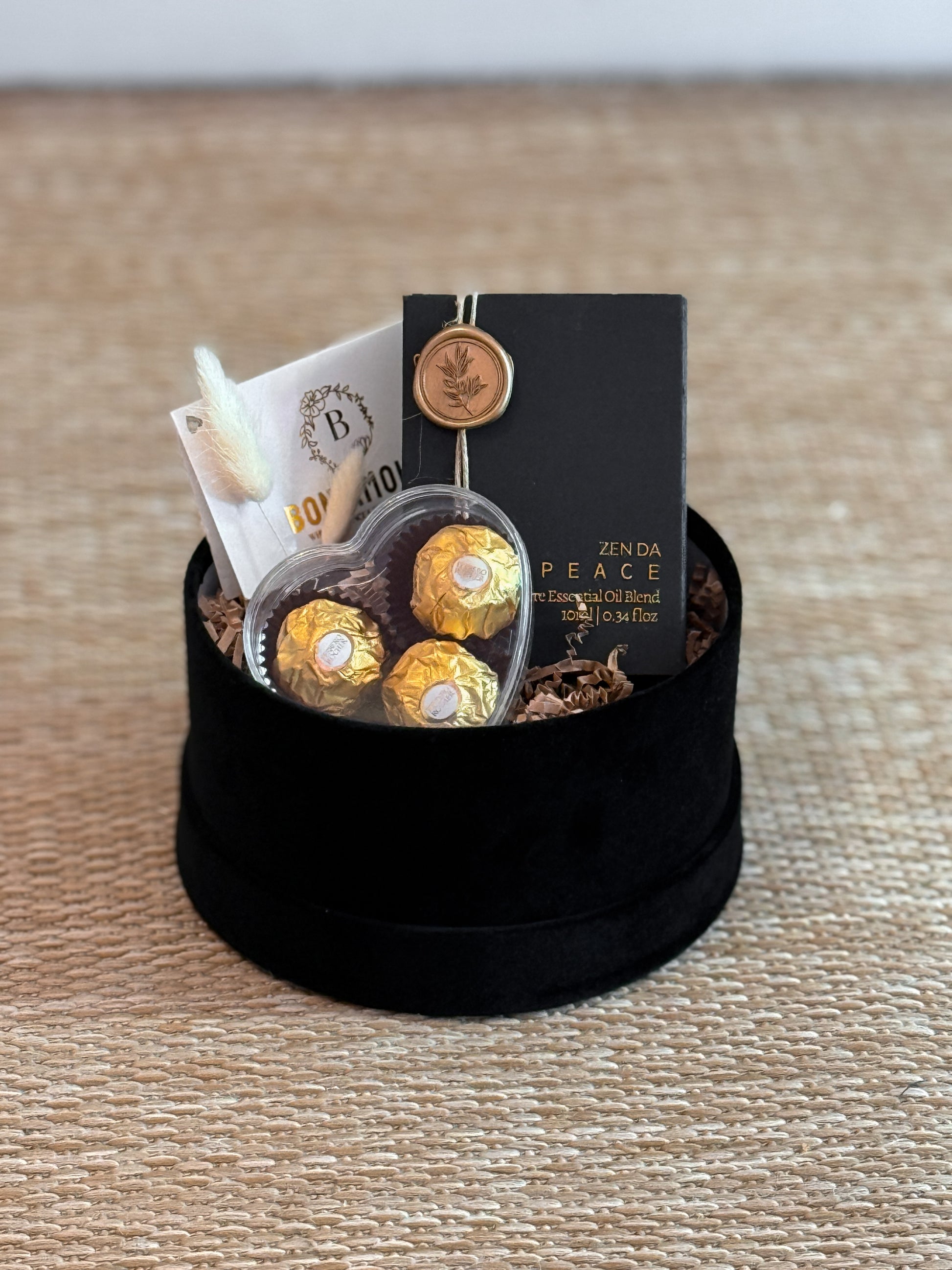 Crafted for the man who gives his all and deserves a moment of serenity. The Velvet Calm is an elevated gift experience housed in a luxurious round black velvet box, blending warmth, intention, and sophistication.